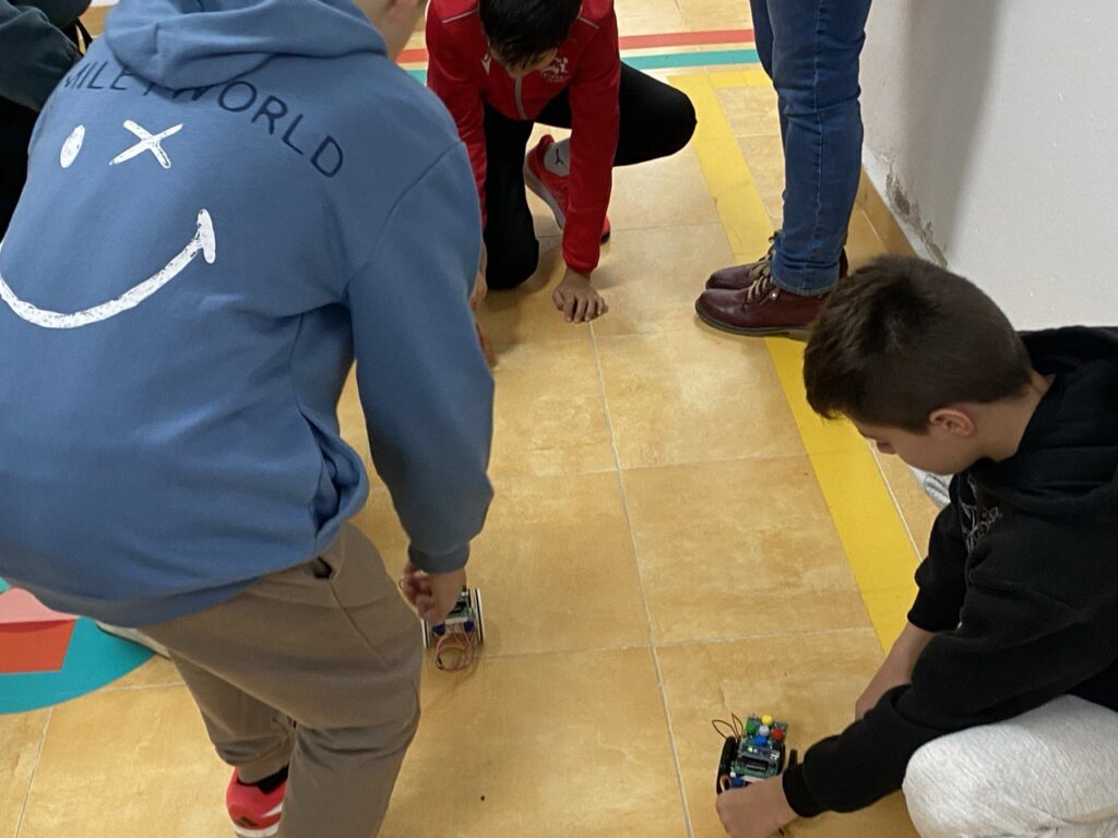 Tras haber completado en sesiones anteriores el montaje del robot educativo Escornabot, el alumnado ha continuado avanzando hacia el diseño del tablero de programación, comprendiendo la relación entre el espacio físico y las instrucciones que guían el movimiento del robot. Esta fase permitió afianzar conceptos clave como la orientación espacial, la secuenciación de instrucciones y el pensamiento computacional.